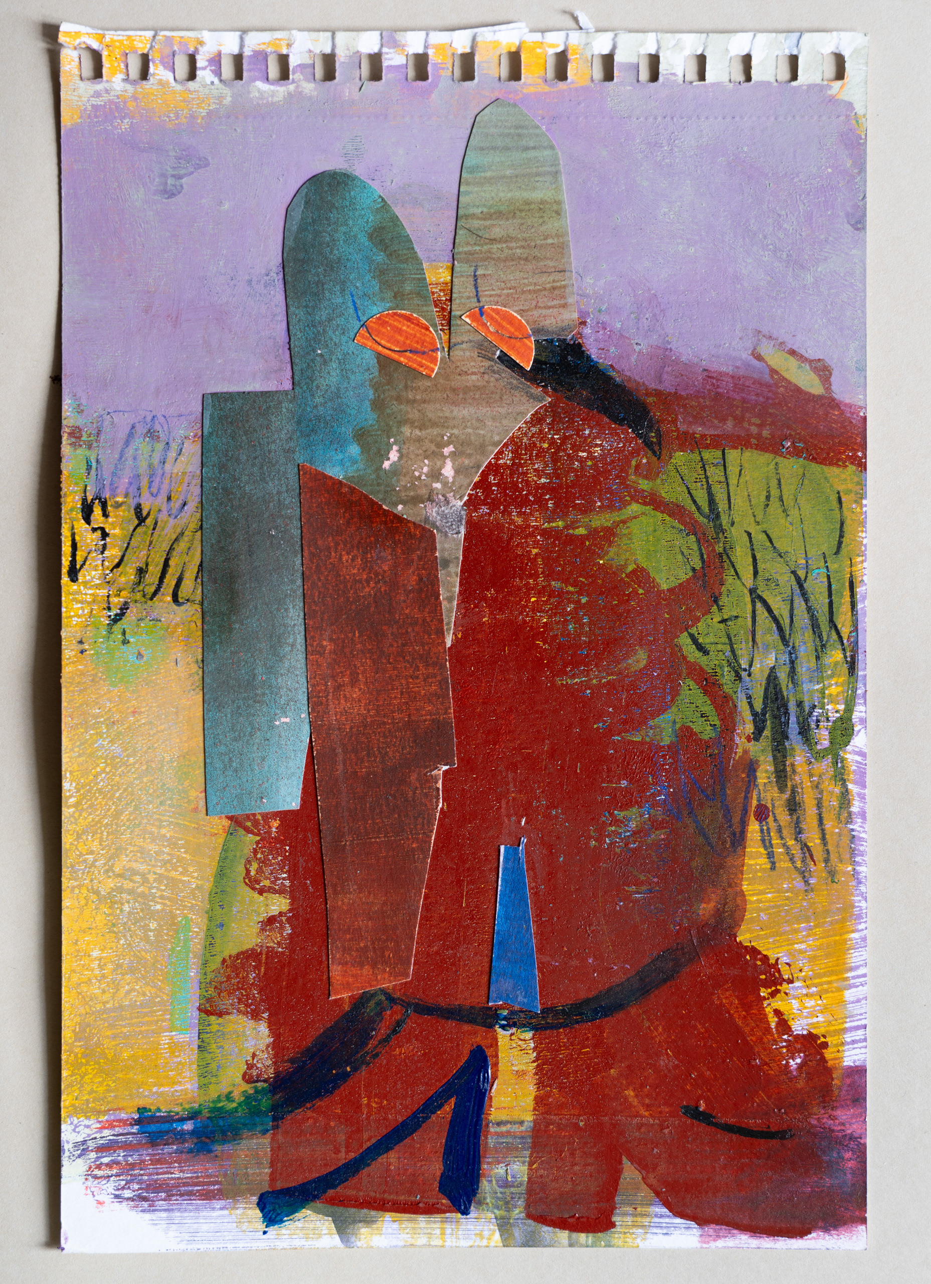 acrylic, watercolour and distemper on paper